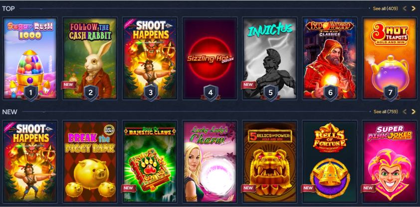 | Slots | Sugar Rush 1000, Sizzling Hot Deluxe | Bonus rounds, multipliers, free spins |